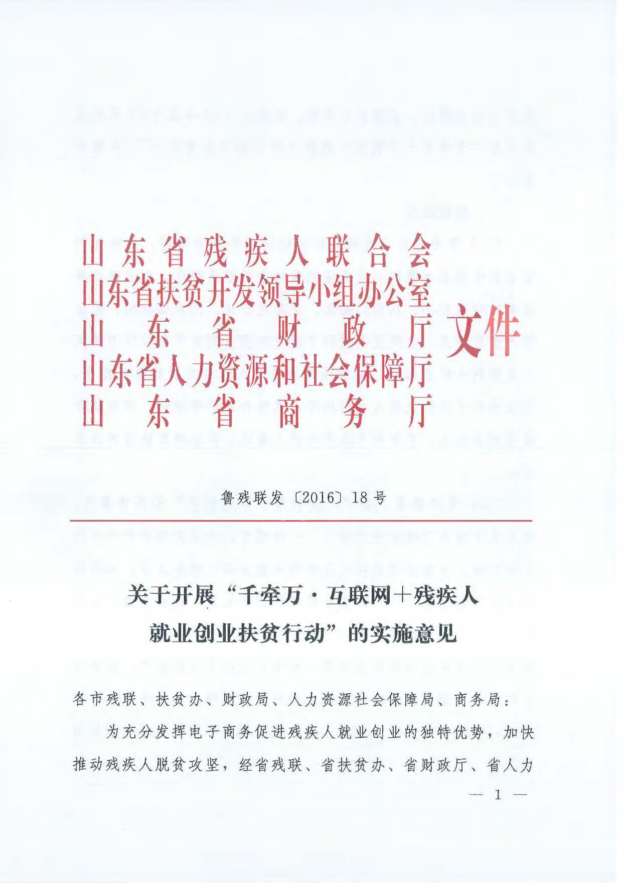 关于开展“千牵万-互联网+残疾人就业创业扶贫行动”的实施意见