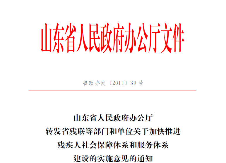 山东省人民政府办公厅转发省残联等部门和单位关于加快推进残疾人社会保障体系和服务体系建设的实施意见的通知