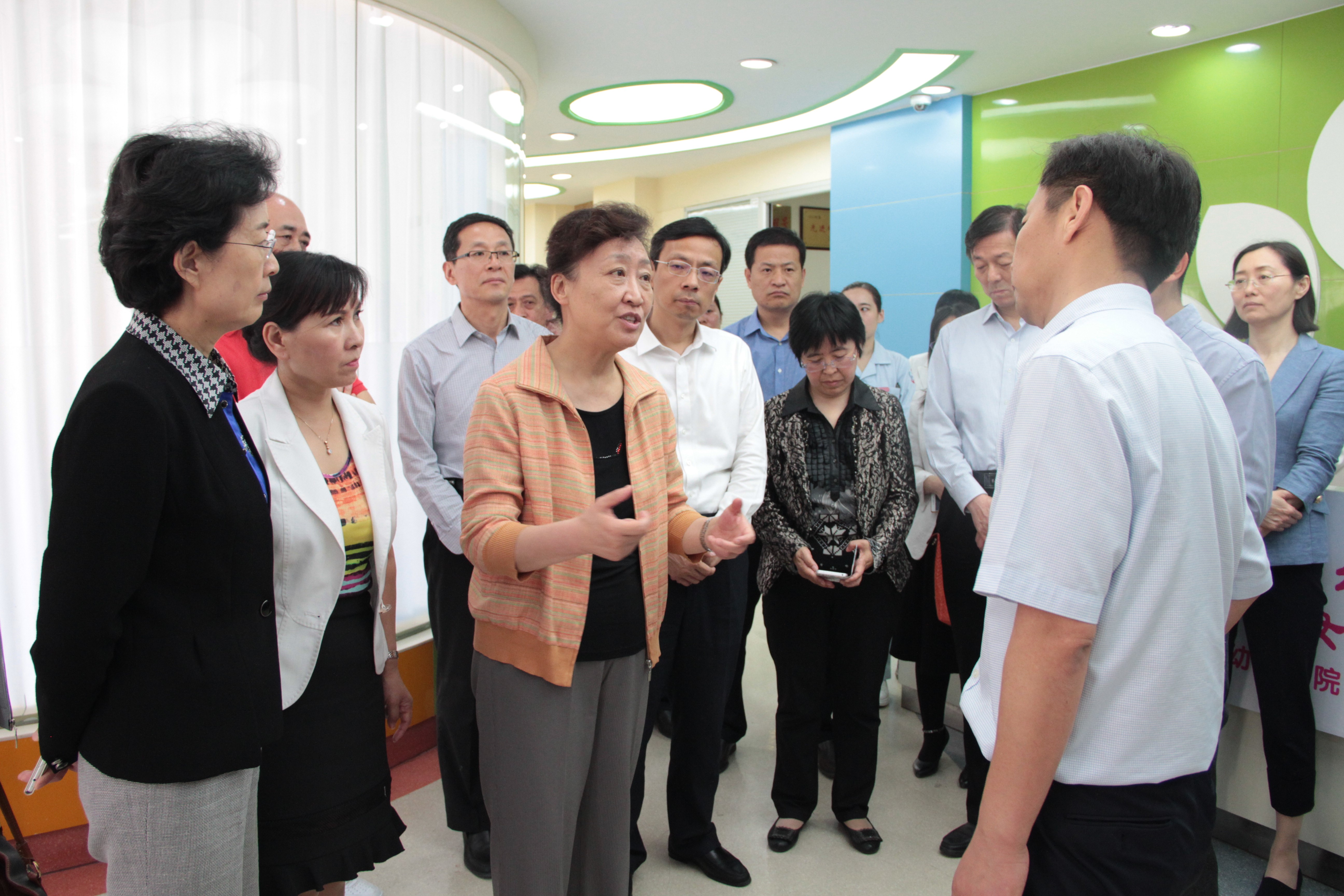 图为省政协副主席翟鲁宁,省残联党组书记、理事长仉兴玉和部分省政协常委、委员,视察聊城市残疾儿童康复医院,向工作人员了解情况