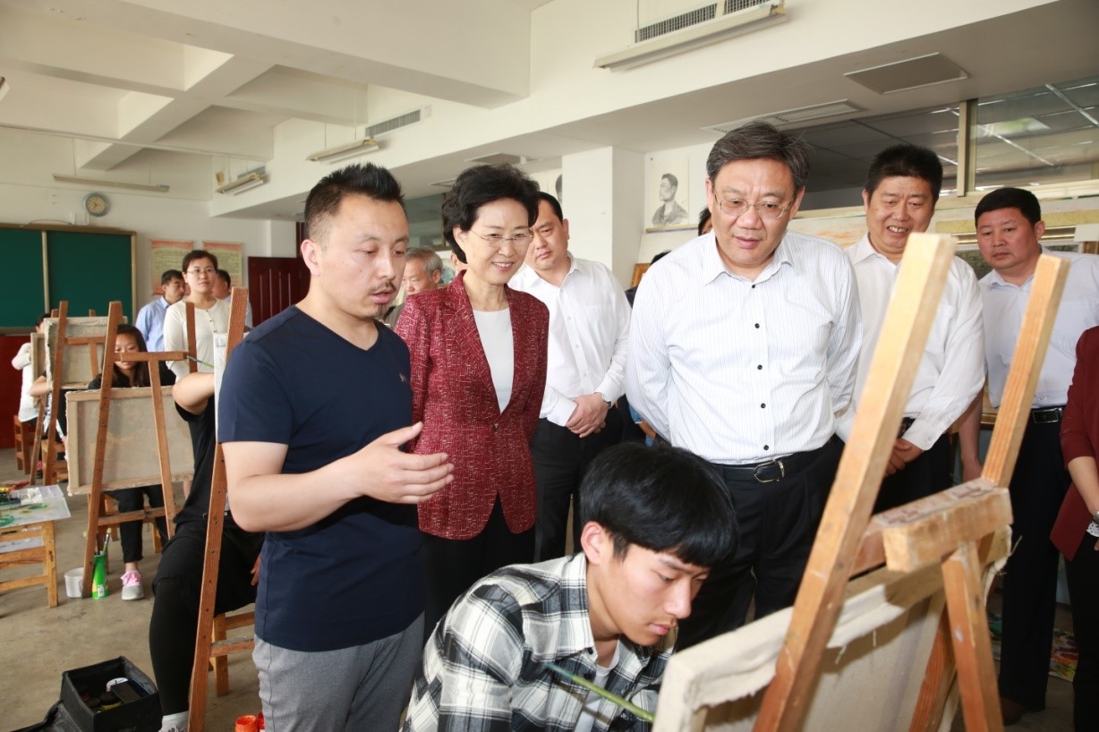 图为省委副书记、济南市委书记王文涛在山东特殊教育职业学院看望在校师生